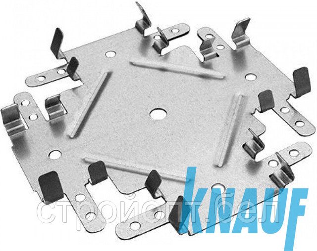 Соединитель профилей краб одноуровневый предназначен для соединения CD профилей на одном уровне путем защелкивания его на профиле. Максимально допустимая нагрузка без фиксации его саморезами до 20 кг/м2.